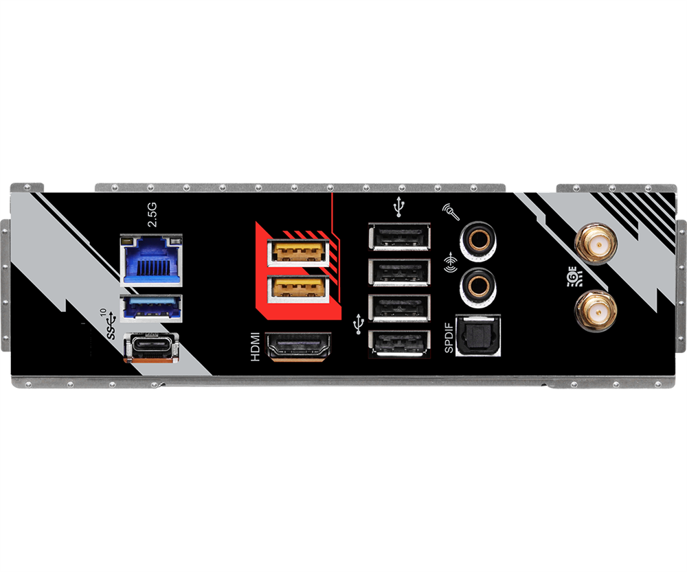 • 3 x USB 3.2 Gen.1 ports • 1 x Type-C USB 3.2 Gen2 port (for Gigabit Ethernet, KB/Mouse, and other standard Type-C I/O functions) • 4 x USB 2.0 ports • 1 x HDMI® 2.1 port • 1 x LAN port • 1 x Optical S/PDIF port • 2 x 3.5mm Audio jacks
