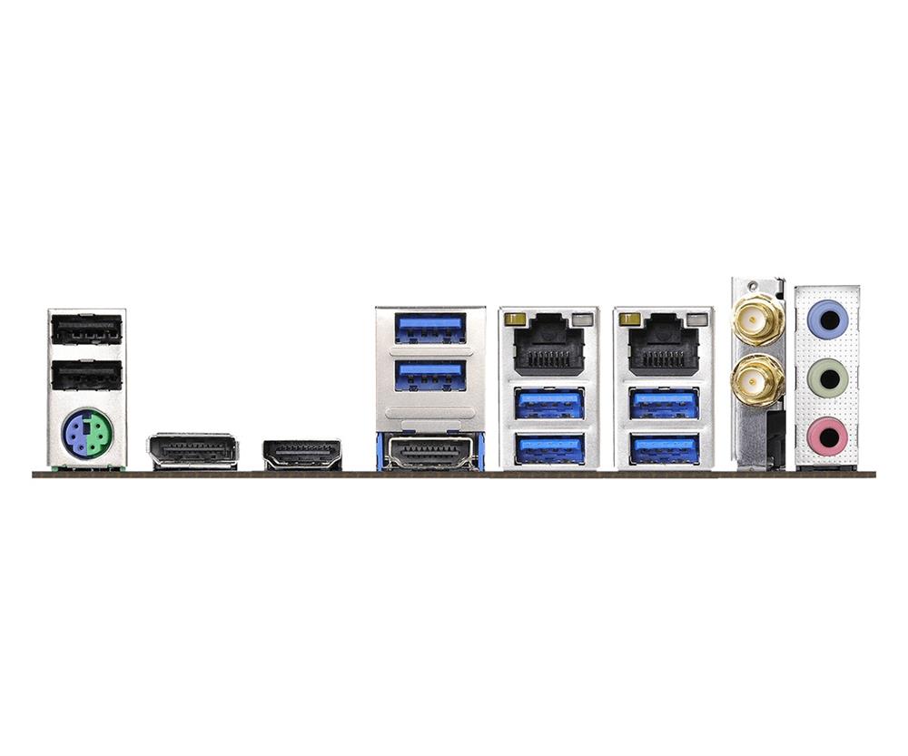 • 6 x USB 3.0 ports • 2 x USB 2.0 ports • 2 x HDMI® ports • 1 x DP • 2 x LAN ports • 3 x 3.5mm Audio jacks • 1 x DC-In 2.5mm Power Connector • 1 x PS/2 Port