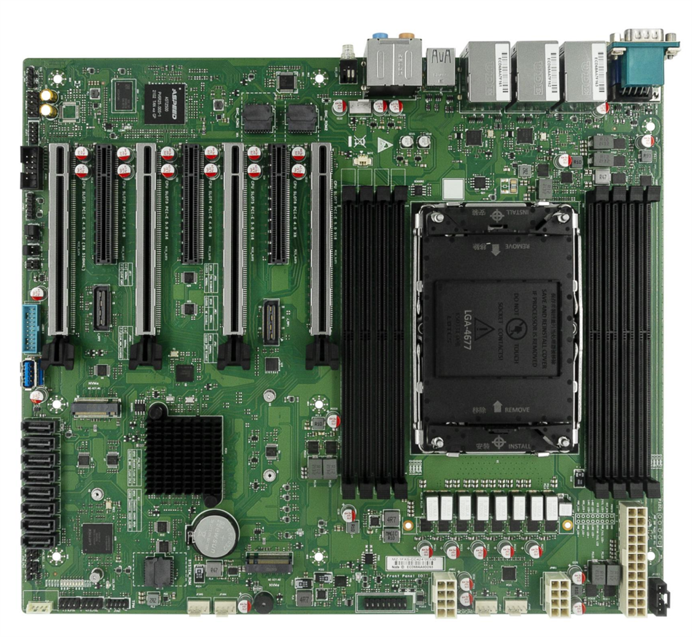 • 5 x USB 3.2 Gen2 Ports • 2 x USB 2.0, 1 x USB 3.2 Type-C • 1 x VGA port • 2 x RJ-45 LAN ports, 1 x RJ45 IPMI port • 1 x RS232 DB9 COM port • 6 x 3.5mm Audio jacks